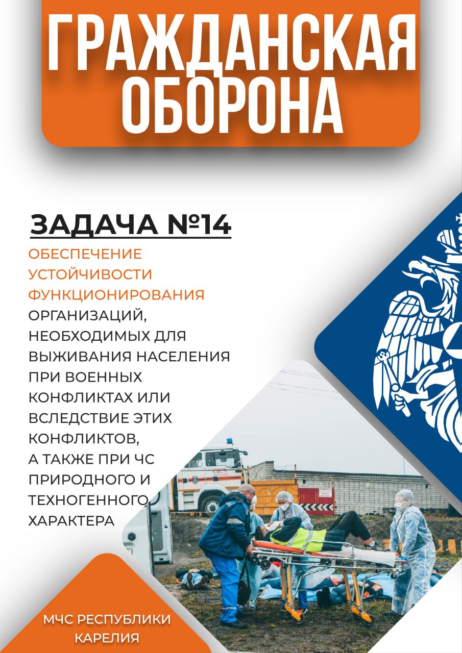 Задача №14: обеспечение устойчивости функционирования организаций, необходимых для выживания населения при военных конфликтах или вследствие этих конфликтов, а также при ЧС природного и техногенного характера.