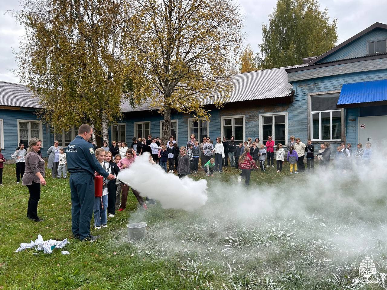 Далее в образовательном учреждении провели учебную эвакуацию из здания и занятие по применению огнетушителя. Ребята с интересом слушали инструктаж и участвовали в практической части. В случае чрезвычайной ситуации важна каждая минута, поэтому такие тренировки хороший способ наработки жизненно важных навыков.