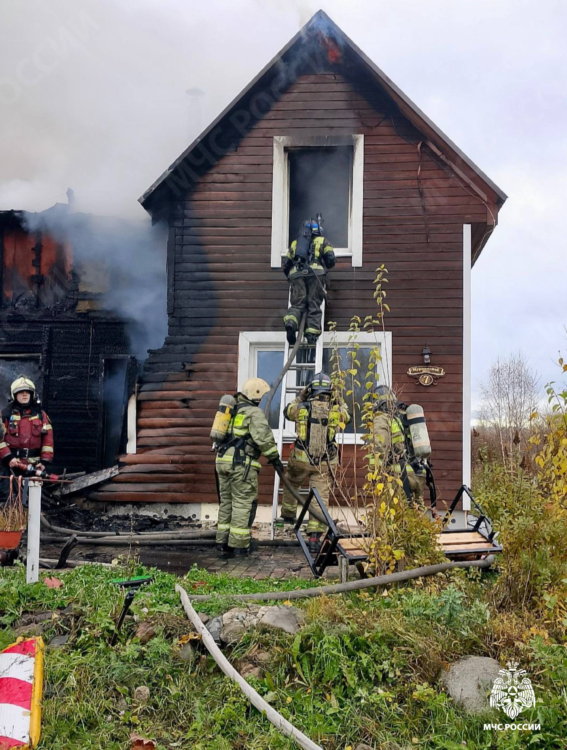 В 08:43 поступило сообщение о пожаре в двухэтажном деревянном доме по адресу: посёлок Шуя, шоссе Мурманское, дом №7. Двое человек эвакуировались самостоятельно.