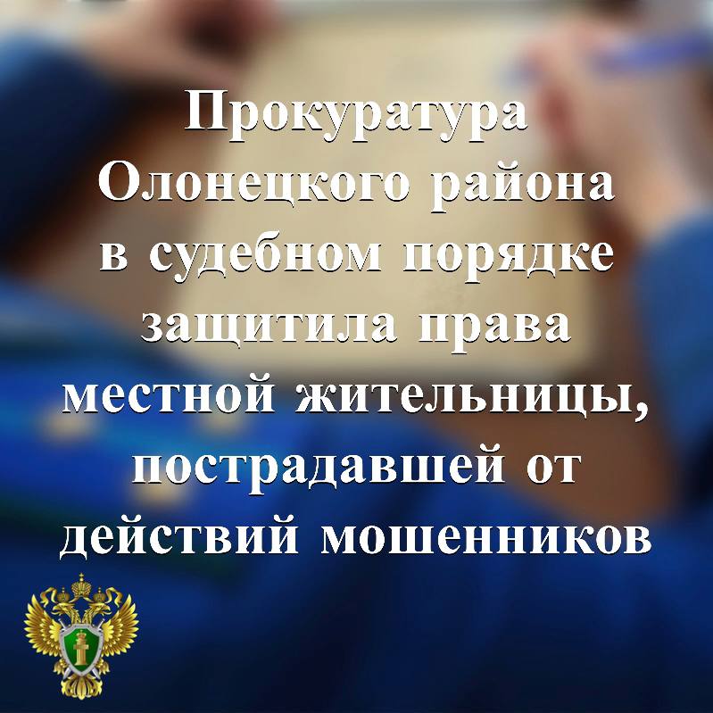 Прокуратура Олонецкого района провела проверку по обращению местной жительницы, признанной потерпевшей по уголовному делу о мошенничестве