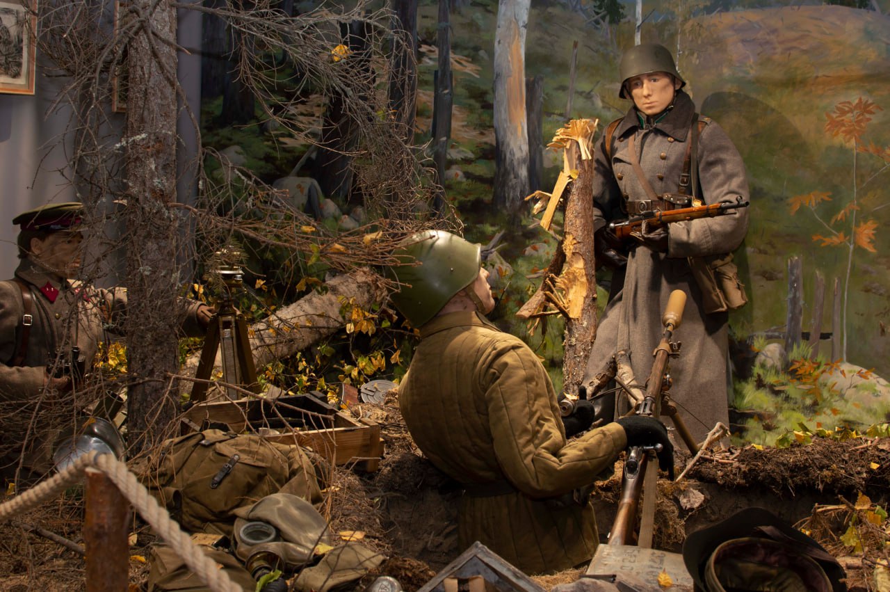 В ходе посещения центра ребята ознакомились с экспозицией, включающей архивные документы, фотоматериалы, образцы вооружения и обмундирования, а также личные вещи бойцов. Особое внимание было уделено экспозиции, посвященной героической обороне Карелии в годы Великой Отечественной войны.