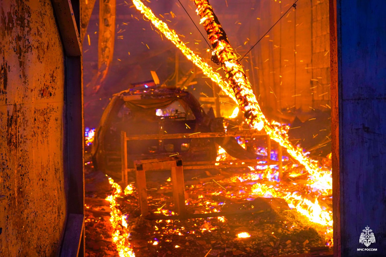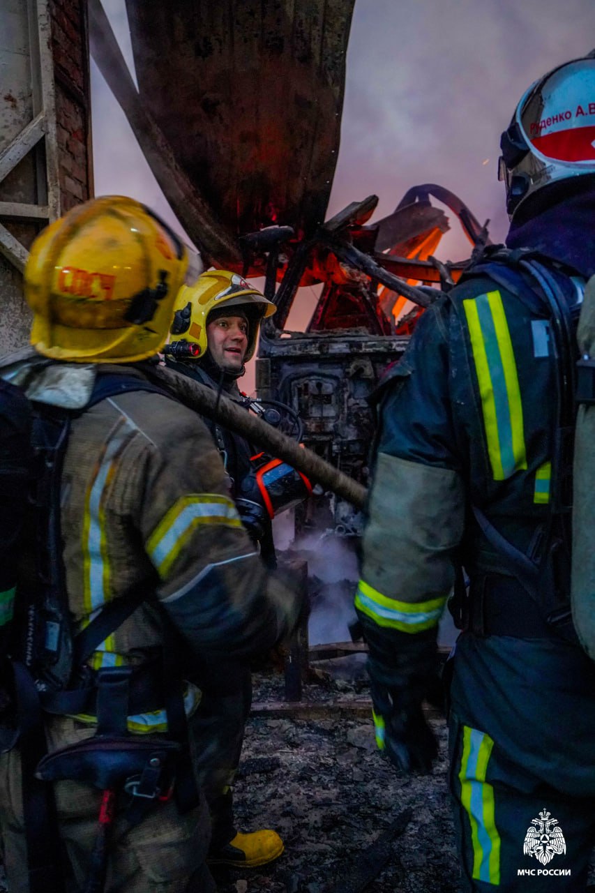 С чем пришлось столкнуться во время работы?— Из-за позднего обнаружения пожара, а также высокой пожарной нагрузки произошло быстрое распространение огня по внутренним перекрытиям и каналам. Когда звенья работали внутри, началась серия хлопков газовоздушной смеси. Огонь разошёлся по кровле моментально, площадь составила приблизительно 400 квадратных метров. Создалась угроза обрушения кровли. В этот момент я вывел ребят наружу, чтобы они не пострадали. Внутри было очень много баллонов. В таких условиях для меня главное – сохранить личный состав.