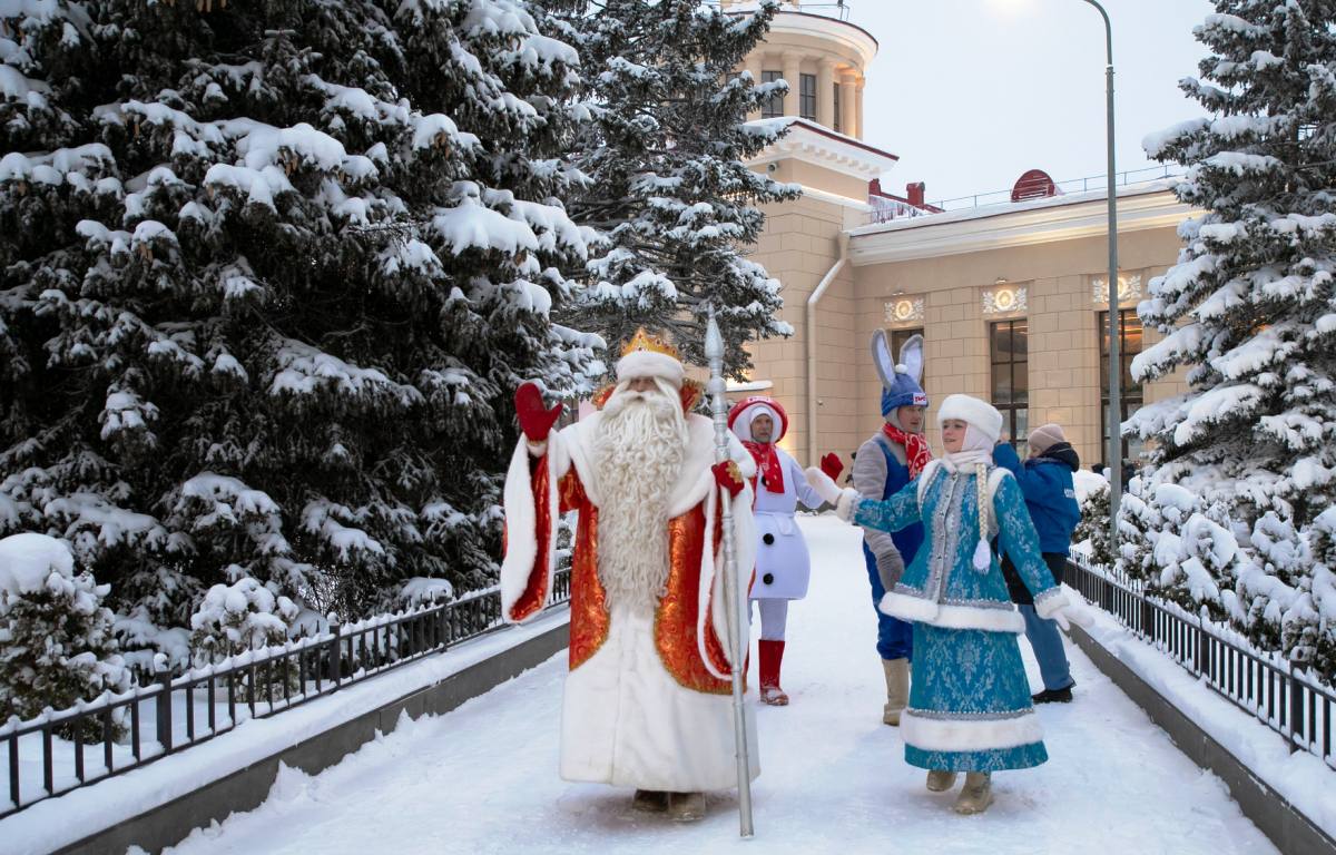 Несмотря на холод и метель десятки юных гостей и жителей республики вместе с родителями пришли на железнодорожный вокзал Петрозаводска на встречу с символом Нового года.