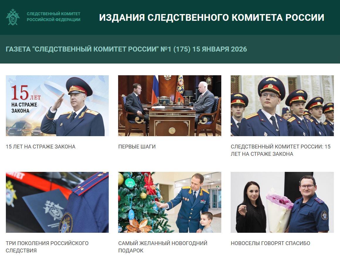 Новый выпуск газеты «Следственный комитет России», приуроченный к 15-летию со Дня образования ведомства