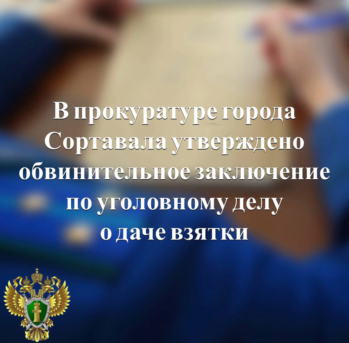 В прокуратуре города Сортавала утверждено обвинительное заключение по уголовному делу в отношении 43-летнего местного жителя. Он обвиняется по ч. 3 ст. 291 УК РФ (дача взятки должностному лицу за совершение заведомо незаконных действий).