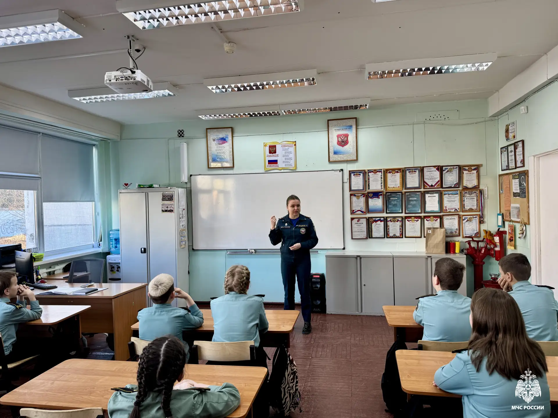 Сотрудник МЧС Карелии провела занятие с кадетами Школы №2 имени А.С. Пушкина в Костомукше.