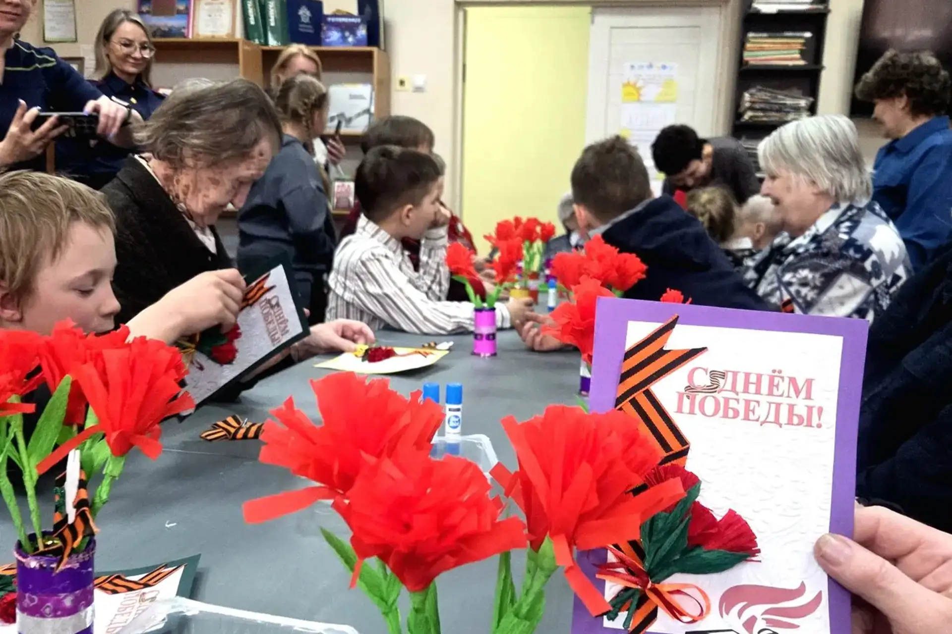 К совместному творчеству присоединились проживающие в интернате ветераны и воспитанники Центра помощи детям. В процессе работы участники осваивали приёмы оформления тематических сувениров, используя праздничную символику. Каждому ребёнку представилась возможность поговорить с защитником Родины, выслушать его истории и вложить в открытку собственную благодарность.