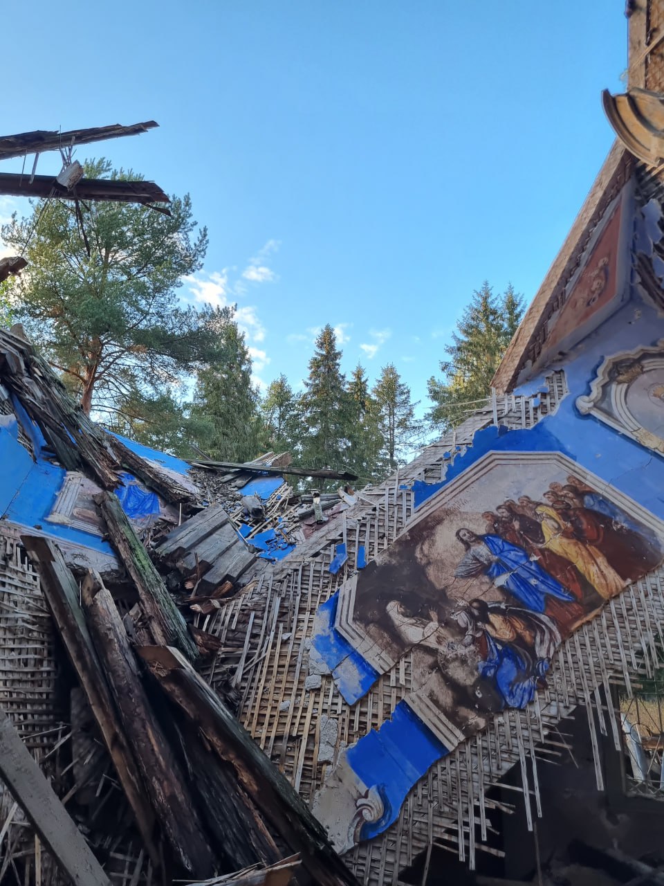 Буквально вчера мы приезжали в Пестово с большой командой реставраторов, архитекторов, деревянщиков, реставраторов живописи и благотворителем, который готов начать финансирование консервирования.Сейчас первая задача соорудить большой навес достаточно сложной конструкции, потому что храм довольно большой. Рухнула крыша и часть храма, все эти завалы надо накрыть, там еще сохранилась живопись, и сейчас это главная задача, чтобы в дальнейшем начать какие-то более серьезные консервационные и реставрационные работы.