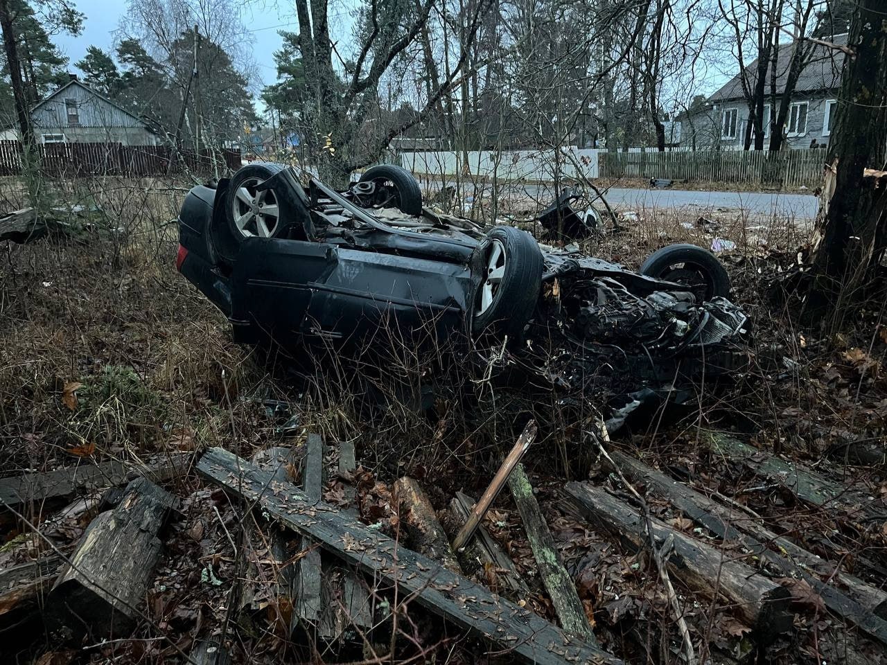 5 ноября в 1:40 ночи «Форд Фокус» на высокой скорости занесло, он врезался в мусорный контейнер и деревья, после чего опрокинулся на крышу.