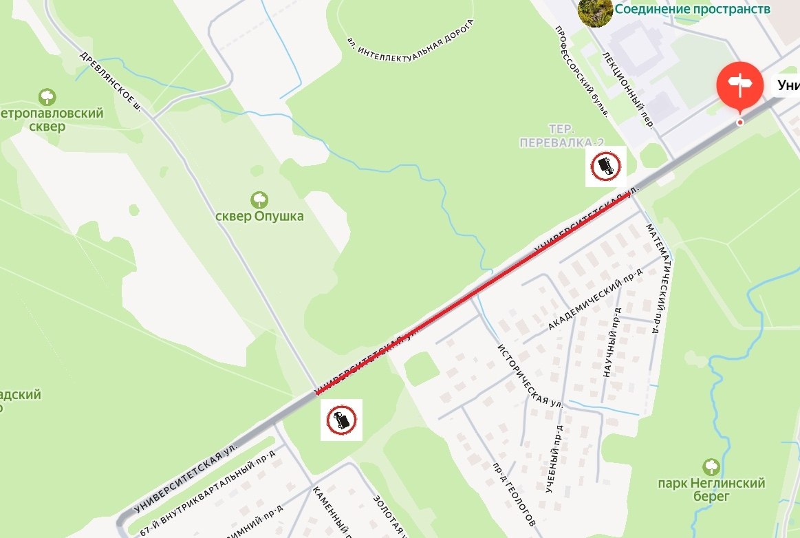 Также с 23 декабря запретят проезд грузовиков на участке Университетской улицы от Древлянского шоссе до Математического проезда. Ограничения будут действовать с 7:00 до 19:00.