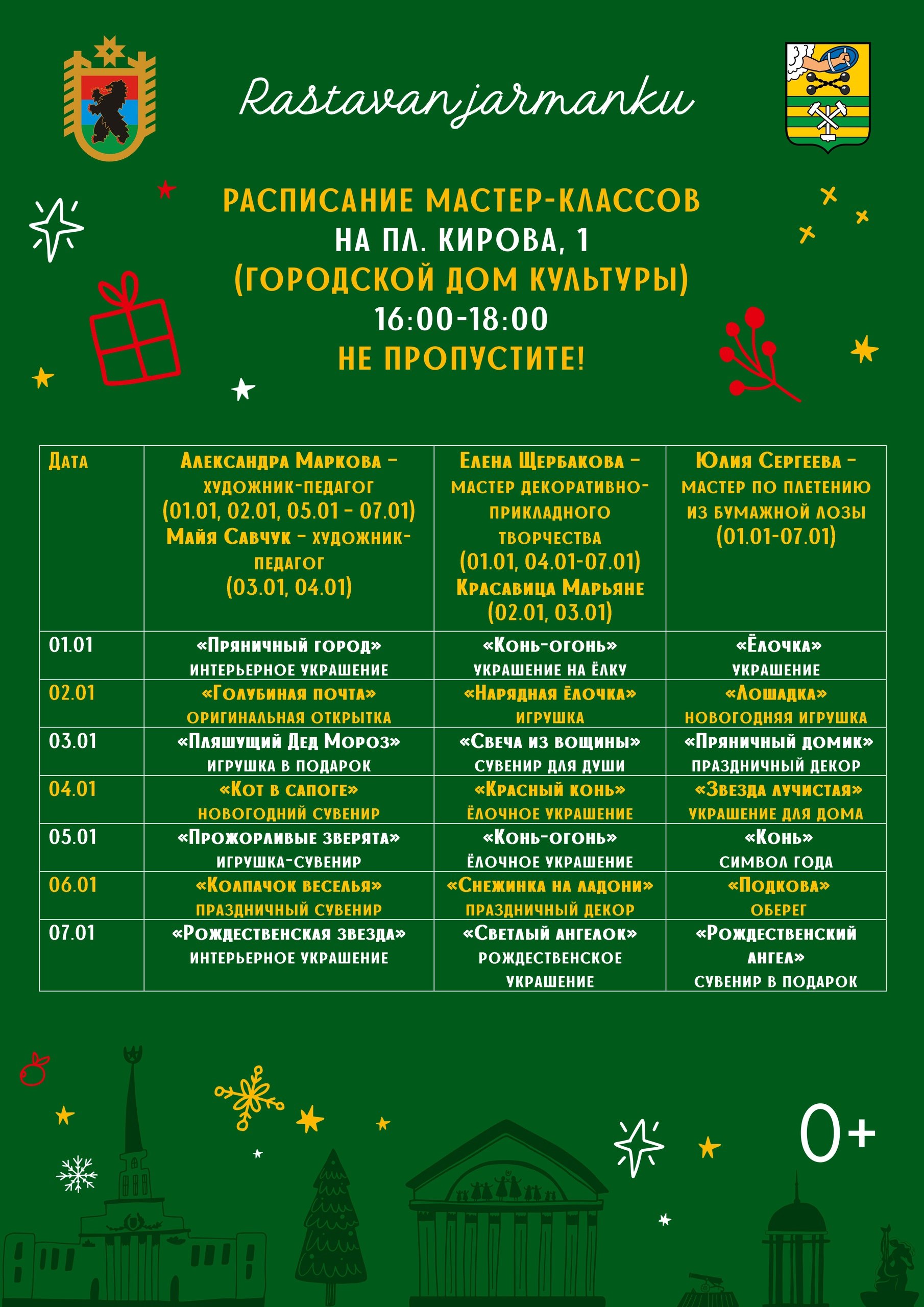 Уже в первый день года в мастер-классах приняли участие 180 человек. Праздничные программы будут проводиться до 7 января.