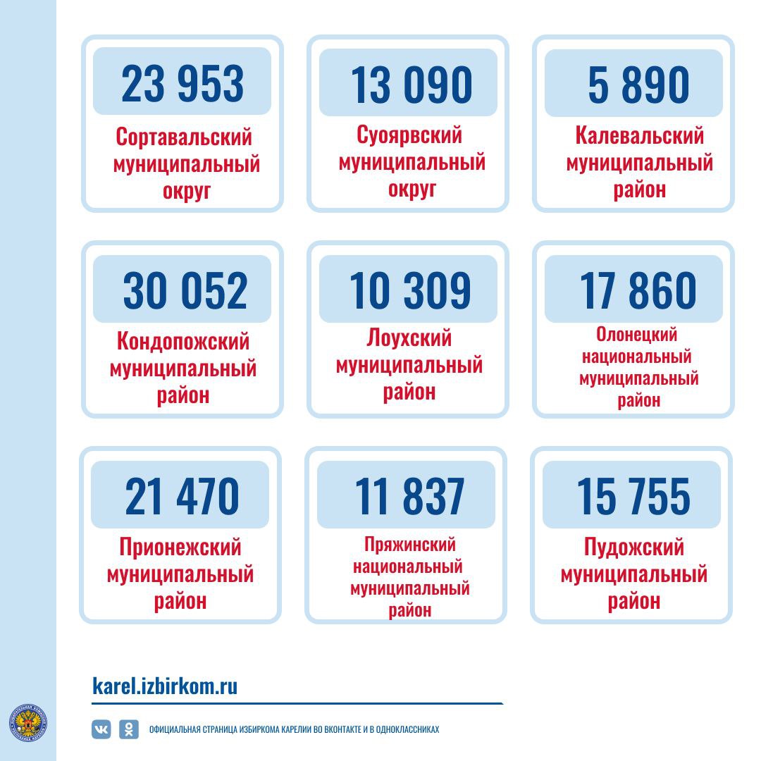 Главой Республики Карелия и Председателем Избиркома Карелии официально утверждены сведения о численности избирателей и участников референдума, зарегистрированных на территории республики по состоянию на 1 января 2026 года. Электорат Карелии составляет 491 740 человек.
