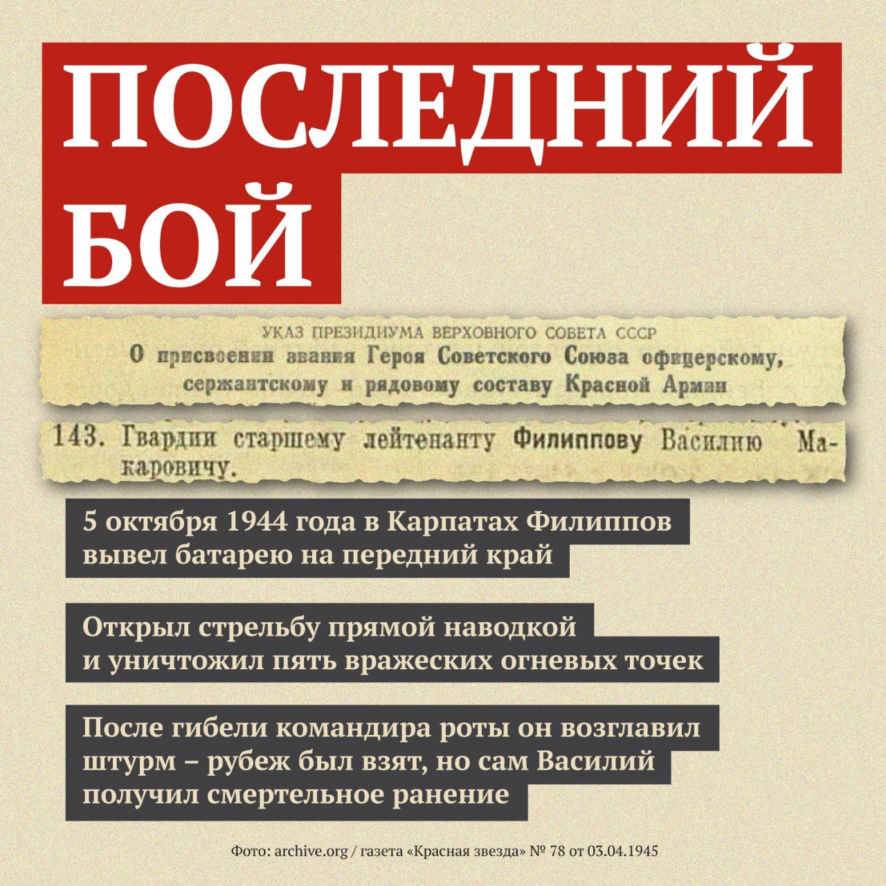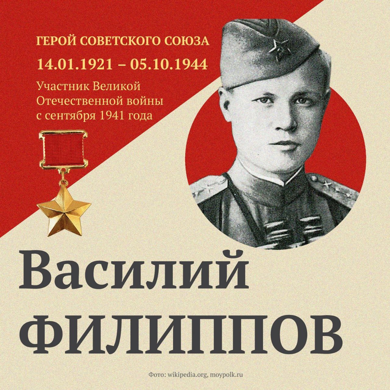 Василий Филиппов, уроженец Карелии, проявил исключительное мужество и героизм в годы Великой Отечественной войны, будучи командиром противотанковой батареи 299-го гвардейского артиллерийского полка 129-й гвардейской стрелковой дивизии 1-й гвардейской армии 4-го Украинского фронта. Его подвиг навсегда вписан в историю борьбы за свободу и независимость нашей Родины.