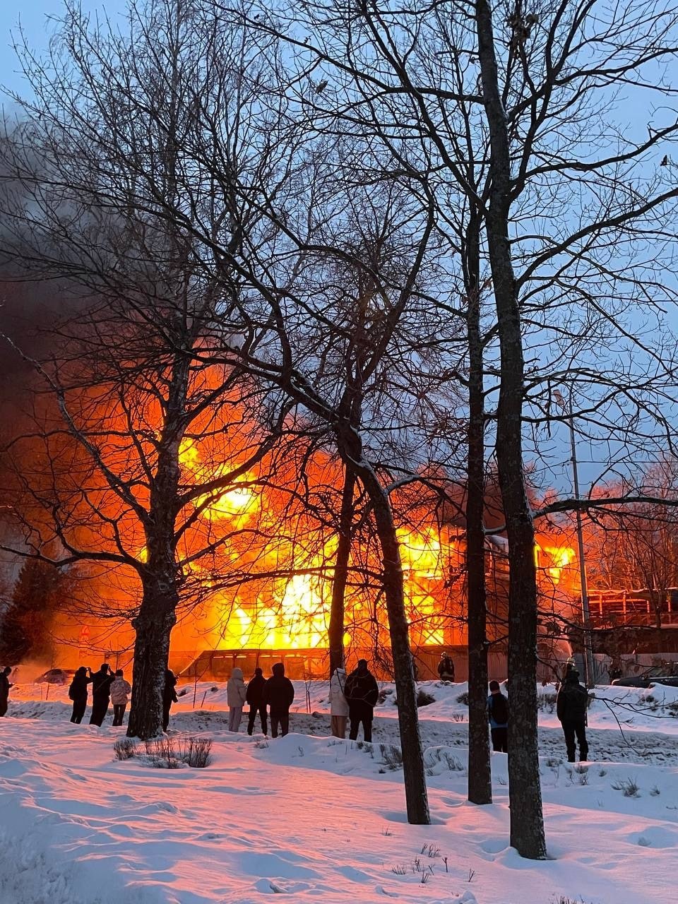 На видео — массивный пожар ранее реконструируемого здания.
