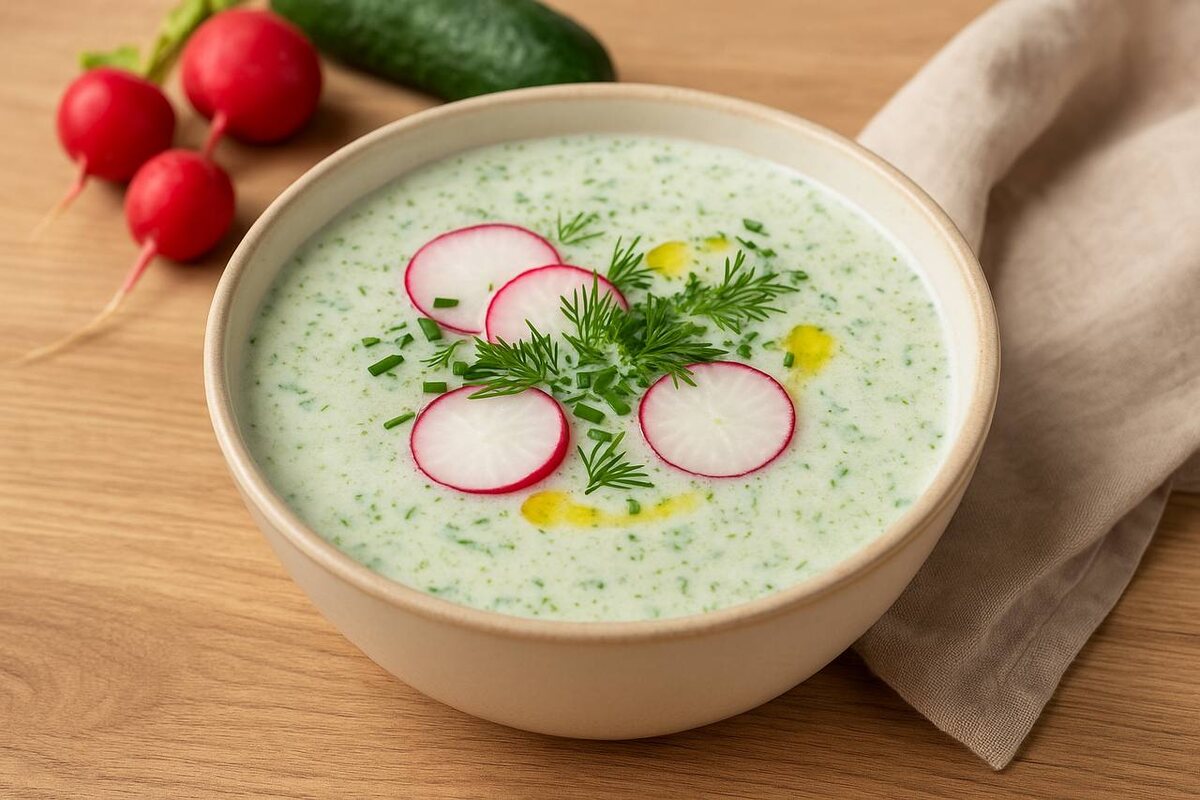 Испанская классика гаспачо традиционно готовится с томатами, но в России появилась собственная версия этого освежающего супа. Здесь нет экзотических ингредиентов, зато присутствует традиционный русский вкус, который сложно не полюбить. Этот суп становится настоящим спасением в знойный день, благодаря сочетанию огурцов, редиса и ароматного кефира.