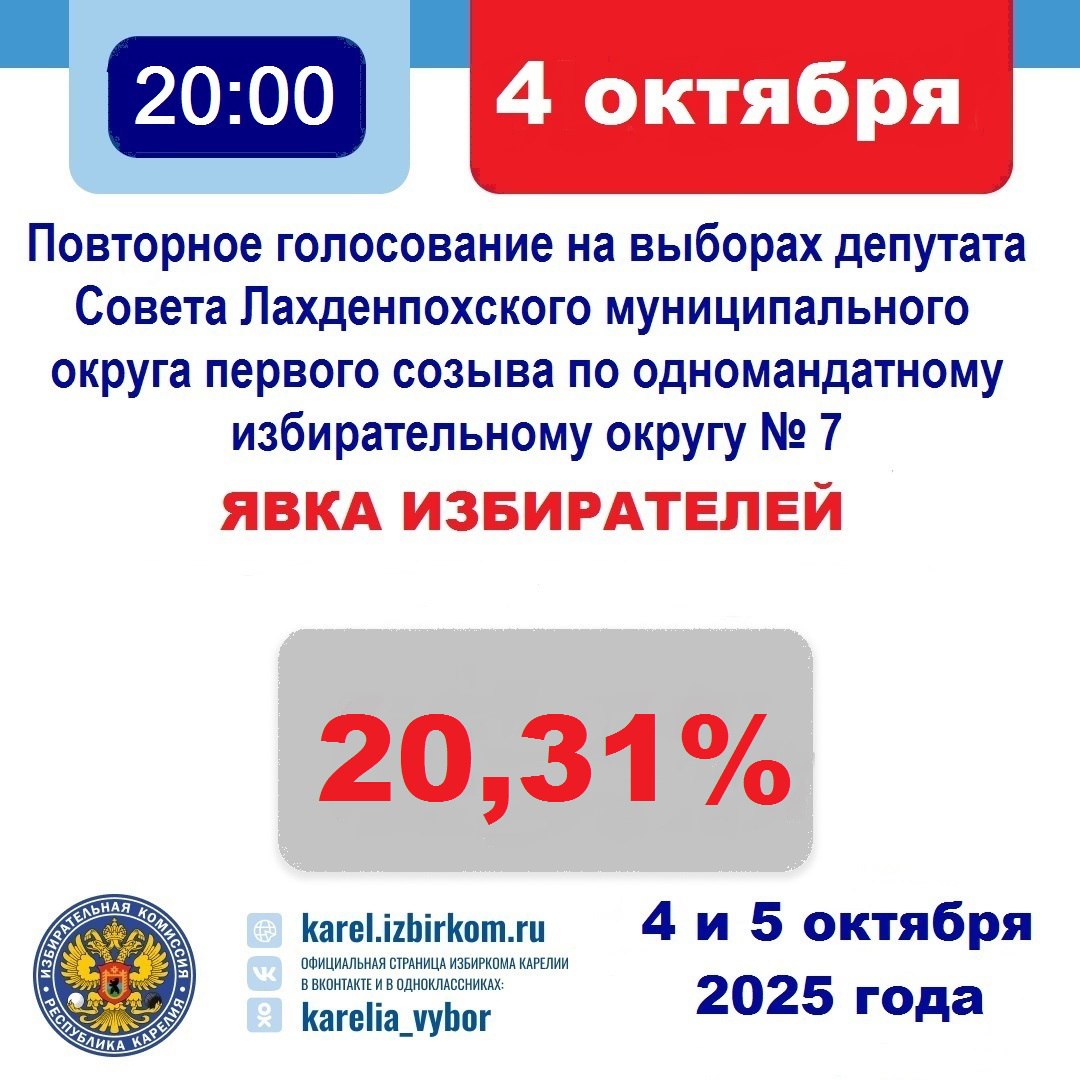 Явка избирателей в первый день повторного голосования составила 20,31%!