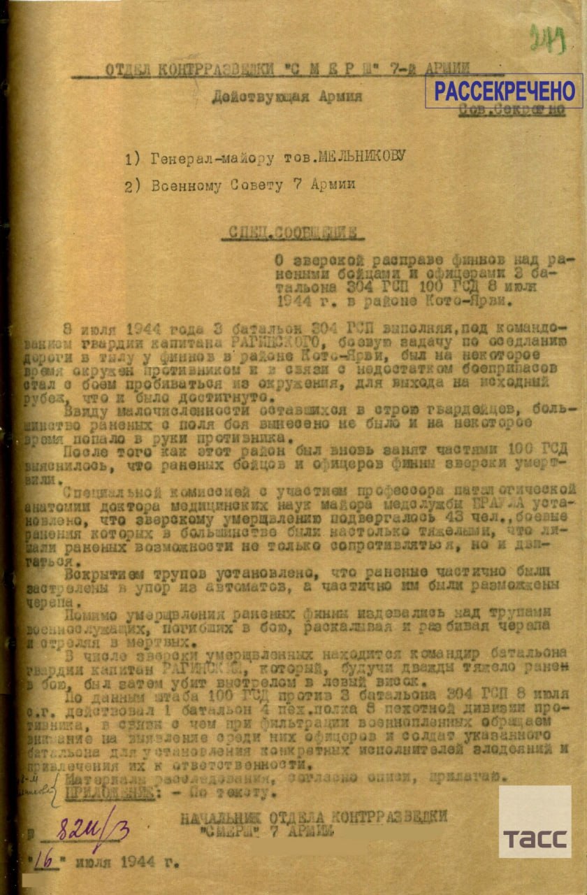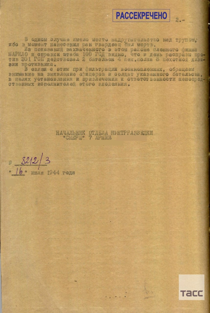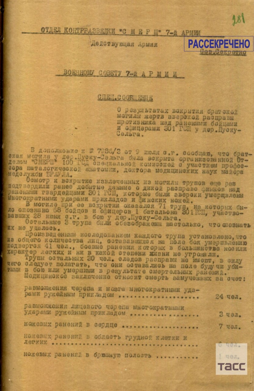 ФСБ опубликовала документы о военных преступлениях финнов в Карелии в 1944 году. В одной из могил нашли 71 труп, некоторые из которых были обезображены до неузнаваемости.