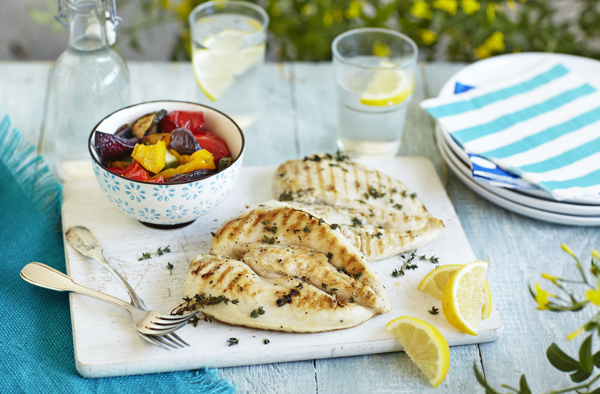 За 20 минут до готовки извлеките курицу из холодильника, слейте маринад и дайте мясу некоторое время нагреться до комнатной температуры. Готовьте грудки на сковороде-гриль или открытом огне, обжаривая с одной стороны 3 минуты, затем переверните и приготовьте ещё 3 минуты. После этого доведите до готовности, переворачивая каждые три минуты, пока курица не станет полностью готовой — не должно быть розоватых участков.