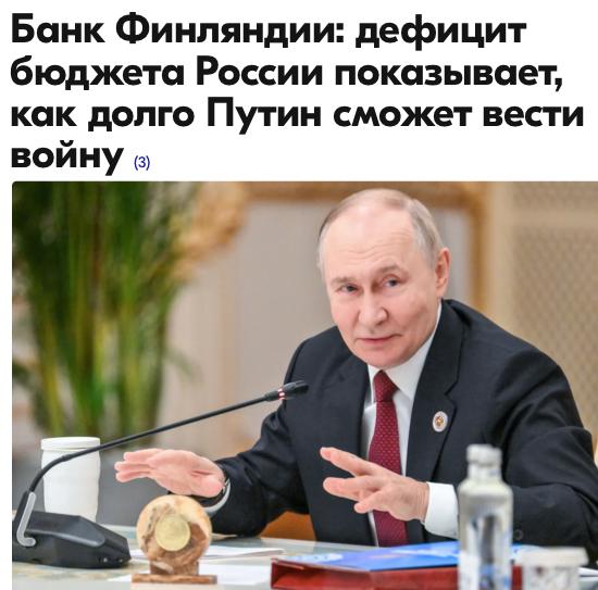 Как утверждает ЦБ Финляндии, денег на войну у Путина осталось на два, максимум на три месяца, после чего железные финские легионы отправятся отвоевывать жизненно необходимое пространство в Карелии.