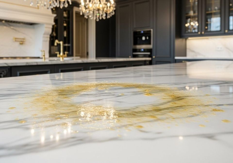Гранит, хоть и кажется бесконечно прочным, на самом деле обладает пористой структурой. Эта особенность приводит к тому, что со временем даже самая качественная поверхность начинает впитывать жиры и масла из пищи. Если не принять меры на раннем этапе, то через несколько недель темные пятна могут стать постоянными. Глубина проникновения жира может варьироваться от 2 до 5 мм, что делает поверхностное очищение малоэффективным. Если не действовать быстро, замена столешницы в будущем может стать единственным вариантом, что потребует значительных затрат.