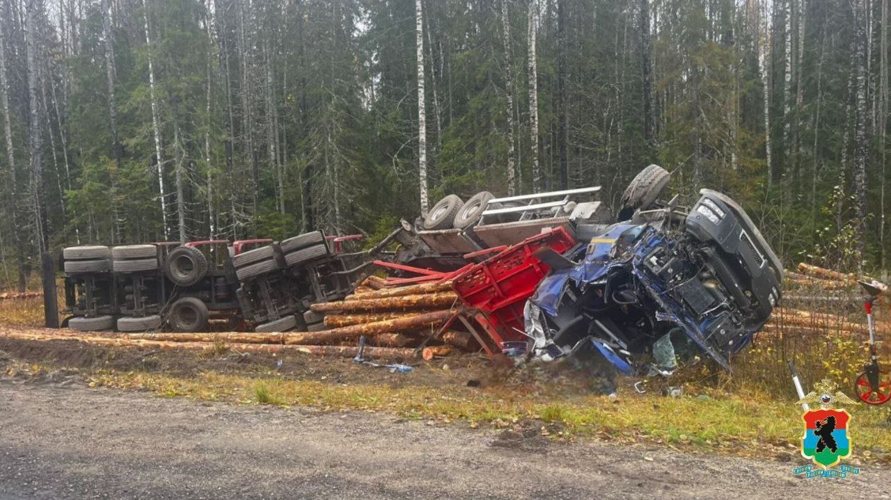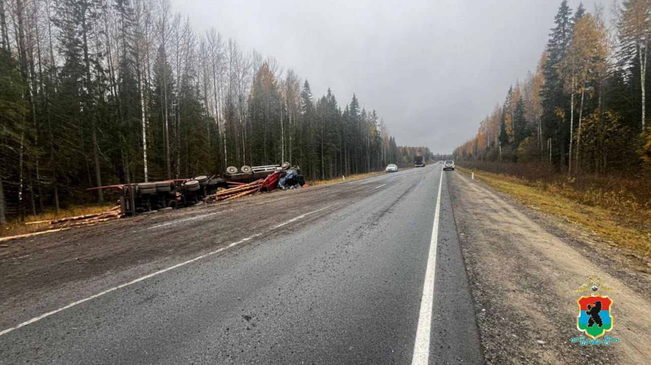 Водитель лесовоза погиб в ДТП на трассе «Сортавала». В Пряжинском районе перевернулся лесовоз