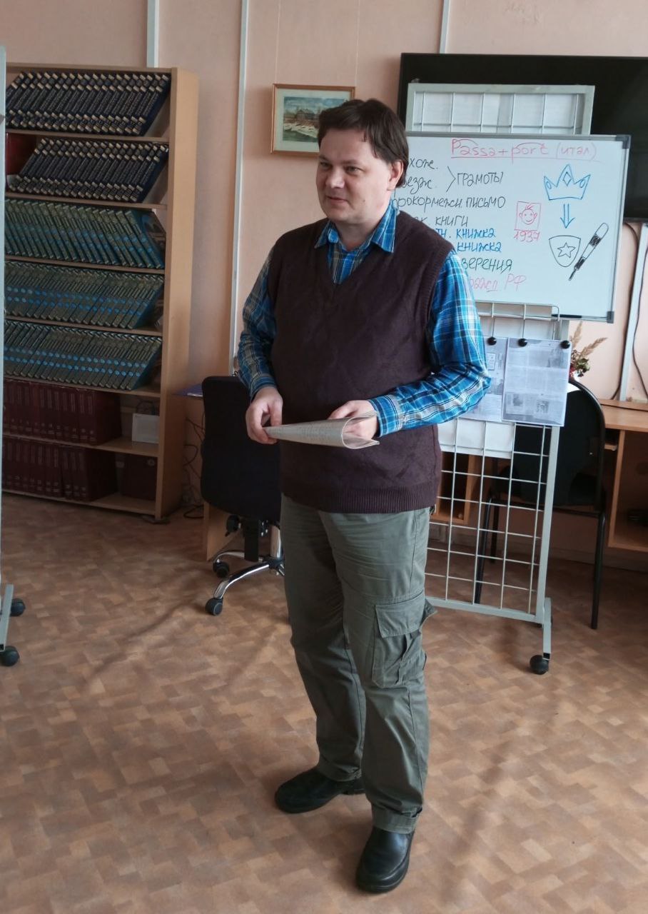 Андрей Викторович рассказал об истории главного документа на выборах - Паспорта гражданина Российской Федерации, дал краткий экскурс в паспортную историю Олонецкого района.