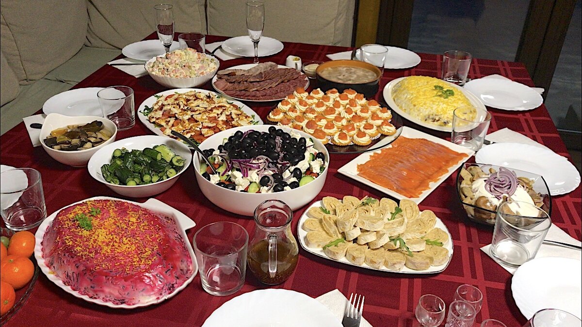 На столе развернулся настоящий кулинарный праздник: были любимые блюда, от которых бегут слюнки. Шикарно подготовленная закуска включала в себя традиционные блюда, такие как "селедка под шубой" и грибной салат — фавориты всей семьи. Мамочка, несмотря на??, с небольшим ребенком, все же постаралась порадовать собравшихся.