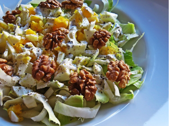 Этот салат удивит своих поклонников экзотическими нотами. Сочетание сладкого апельсина, мягкого козьего сыра и хрустящих орехов создает удивительный вкусный симбиоз, который стоит попробовать.