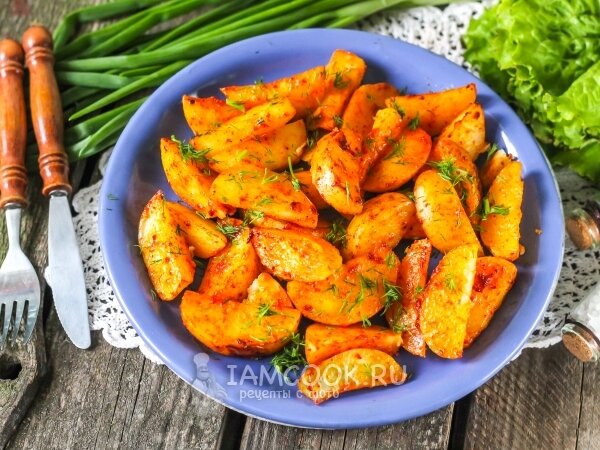 - Картошка по-деревенски в фольге*: Этот простой в приготовлении рецепт включает картофель, приправленный паприкой, солью и перцем, завернутый в фольгу и запеченный в духовке до золотистой корочки. Подается с зеленью укропа.