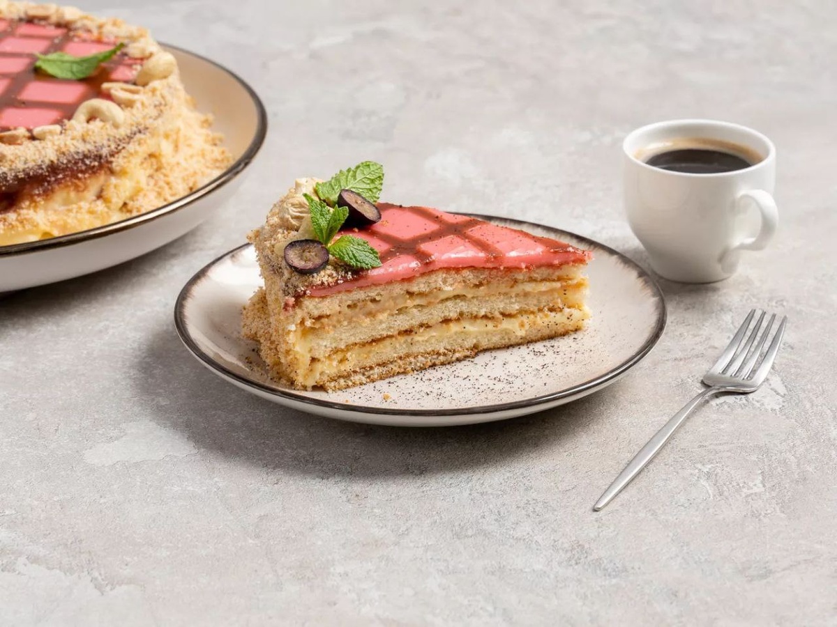 Не забудьте про глазурь: смешайте сахарную пудру с кипятком и добавьте краситель. Затем оформите торт, используя все коржи, прослоив их кремом и покрыв верх глазурью. Торт получится завораживающе вкусным и позволит окунуться в воспоминания о советских кондитерских.