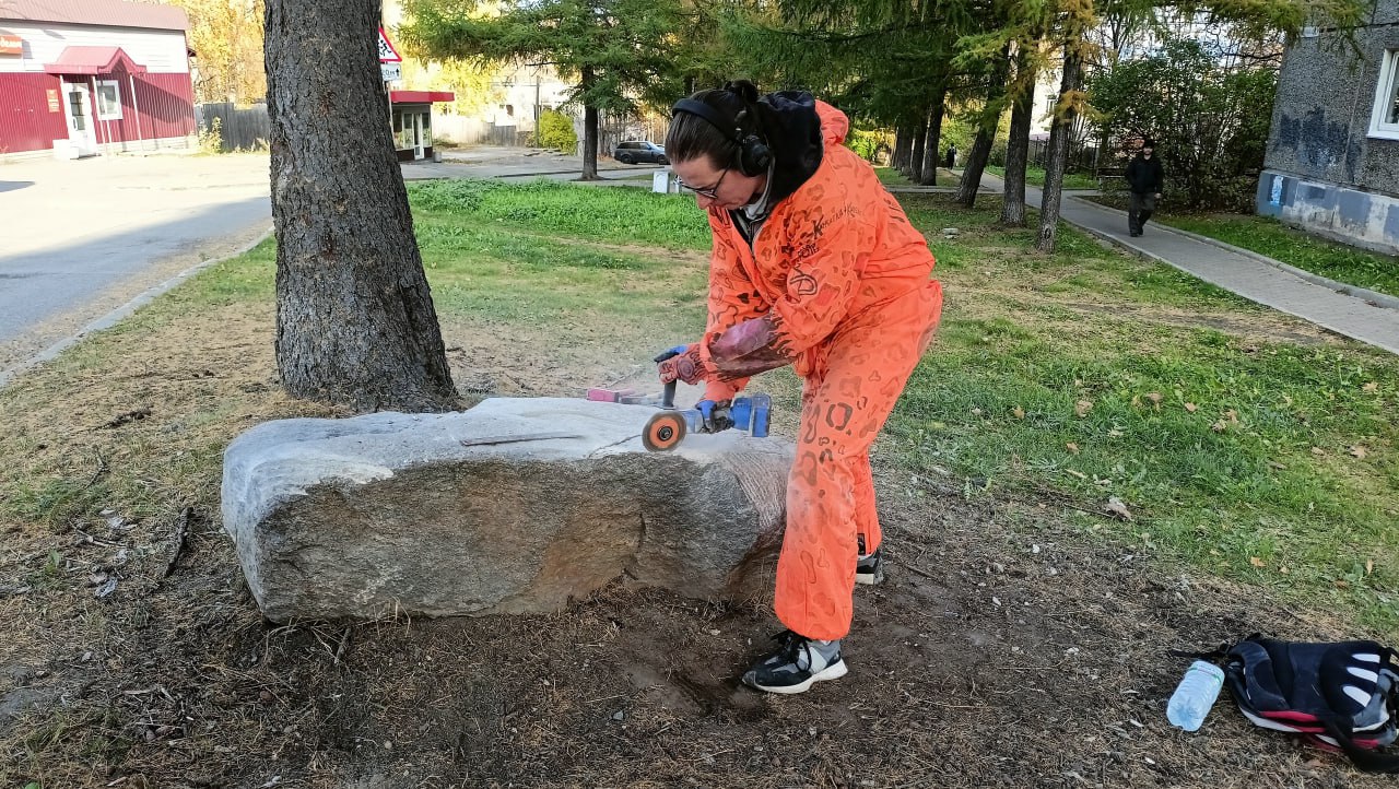 Наша редакция застала автора за работой — похоже, на улице Кондопожская скоро появится каменная клумба для суккулентов. Если, конечно, автор не решит добавить что-то ещё!