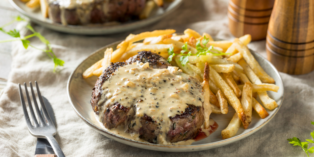 Приготовление стейков: На среднем огне разогреть сковороду с оливковым маслом. Выложить стейки и обжаривать по 3-4 минуты с каждой стороны до нужной степени готовности. Важно следить, чтобы мясо не пересушилось, чтобы сохранить его сочность. После обжарки вынуть стейки и накрыть фольгой, чтобы сохранить тепло.