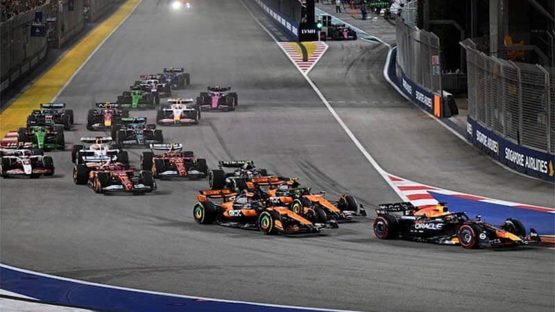 Норрис успешно стартовал на гонке и оказал давление на Пиастри. Однако, пытаясь избежать столкновения с Максом Ферстаппеном на третьем повороте, он в итоге допустил контакт с автомобилем своего товарища по команде, что вызвало недовольство Пиастри в радиопередаче.