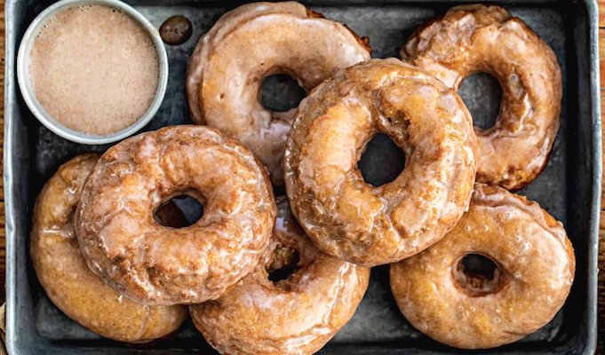 Погрузите теплые пончики в глазурь с корицей, дайте стечь лишней жидкости и разместите на решетке — так глазурь застынет красиво и равномерно. Приятного аппетита!