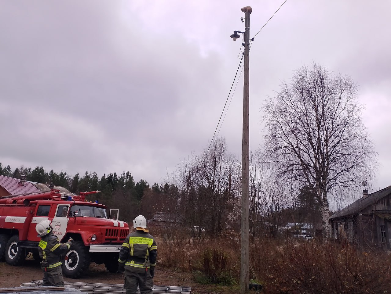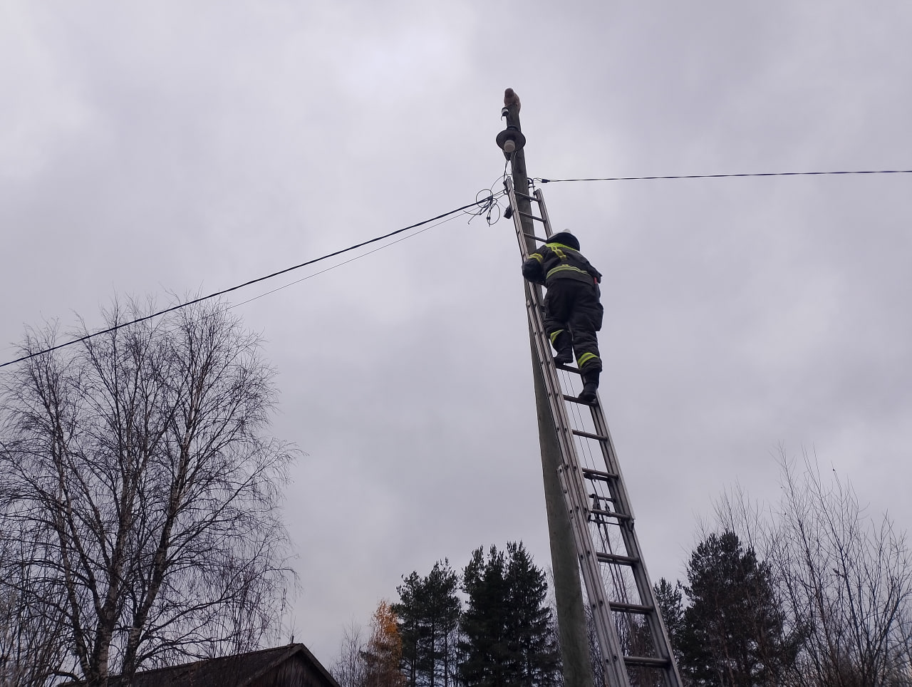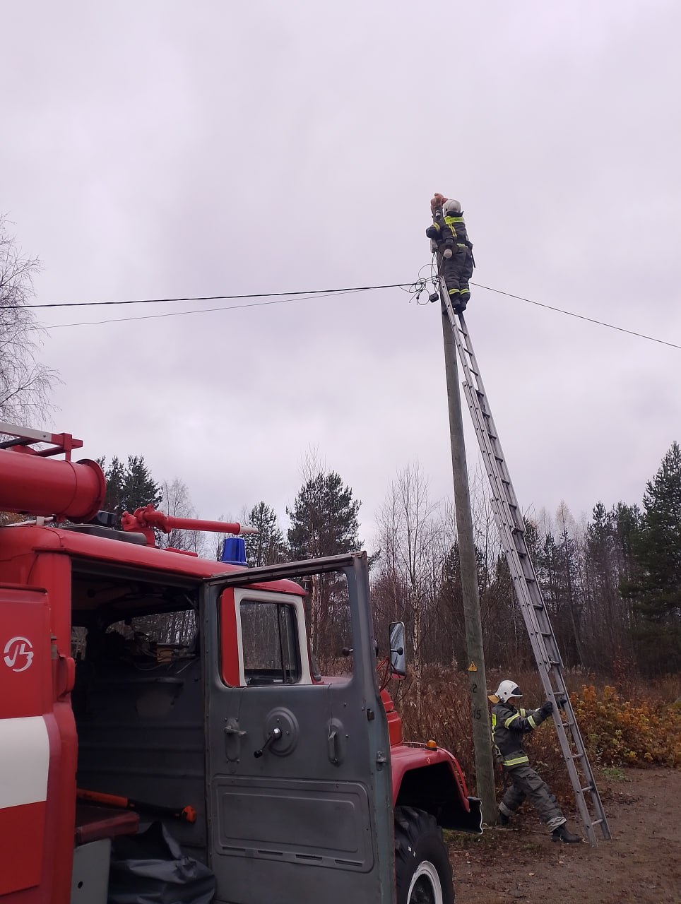 Пожарные спасли кота с фонарного столба в Поросозеро