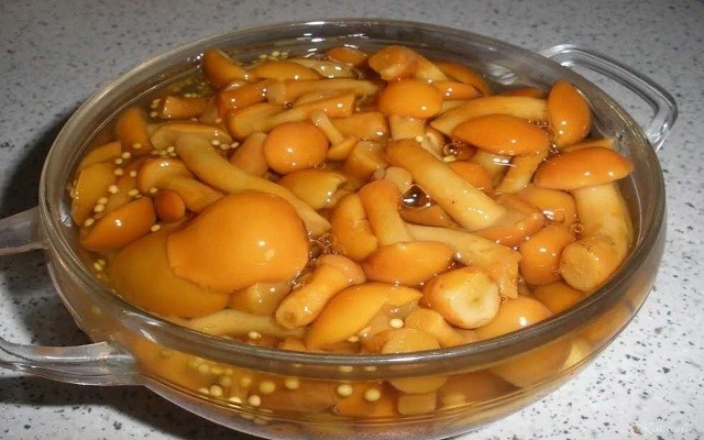 3. В готовый маринад добавляют отваренные грибы и уксус, после чего варят еще 15 минут. В стерилизованные банки закладывают специи, а затем плотно заполняют их горячими грибами и заливают маринадом. Закрывают крышками и оставляют остывать до следующего дня.