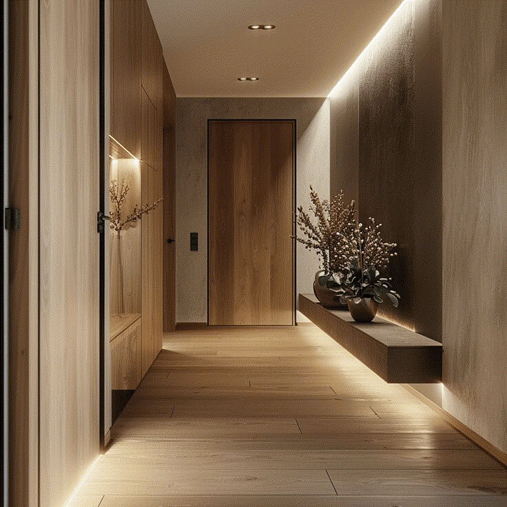 - Настенные и напольные светильники: подходят для освещения длинных коридоров и лестниц, обеспечивая безопасность передвижений.