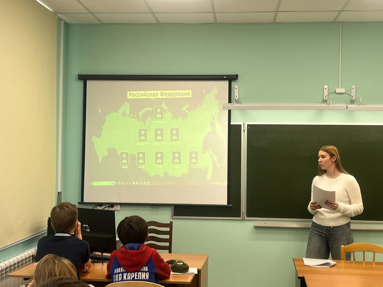 В рамках "Марафона добрых дел" члены молодежной избирательной комиссии Кондопожского урока провели урок электоральной грамотности в кондопожской школе.