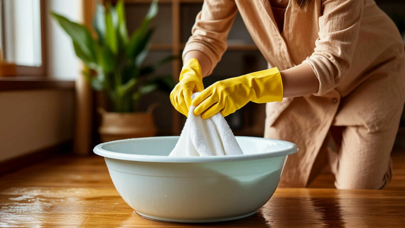 Этот раствор эффективен на самых загрязненных поверхностях. Мыло обеспечивает мягкое очищение, в то время как сода дезинфицирует и нейтрализует неприятные запахи. После обработки полы будут приятными на ощупь и не будут скрипеть.