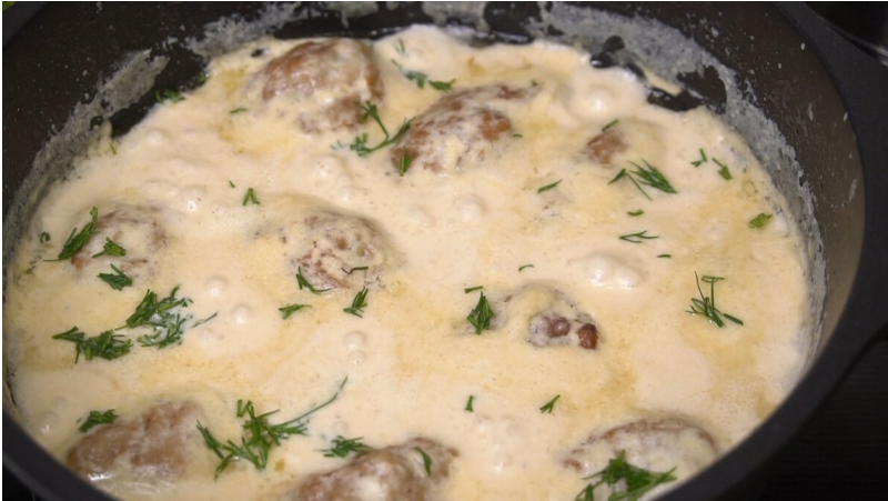Пока котлеты жарятся, в небольшой кастрюле тщательно прогреть сливки, затем добавить плавленый сыр. После того как сыр полностью расплавится, аккуратно поместить обжаренные котлеты в соус, накрыть крышкой и томить 25 минут на минимальном огне. Как вариант, в качестве гарнира можно подать отварной молодой картофель.
