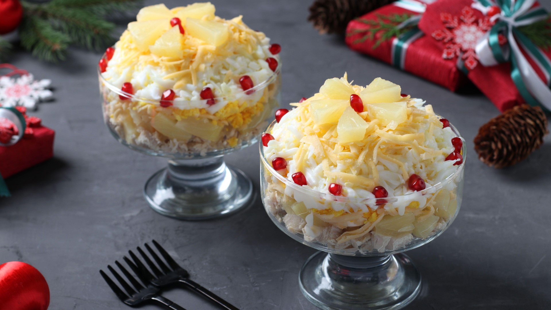 Ищите идеальный салат для новогоднего застолья? Считайте, вы его уже нашли. Нежное копченое куриное филе и сладкий консервированный ананас в сочетании с сыром и пикантной заправкой никого не оставят равнодушными.