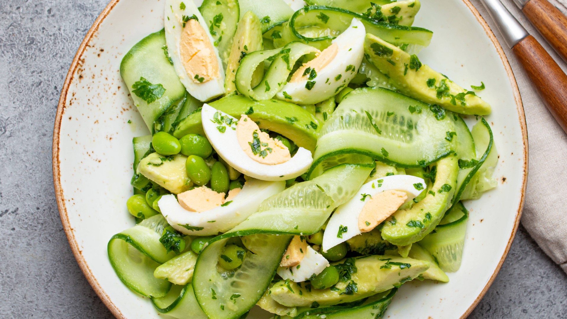 Сварите яйца и нарубите на кубики, аналогичным образом измельчите огурцы. Соедините нарезанные продукты с зеленым горохом, кусочками чеснока и зеленью, советует портал Lafoy. Останется только приправить салат йогуртом и специями. Готово! Теперь блюдо можно перемешивать и подавать к столу.