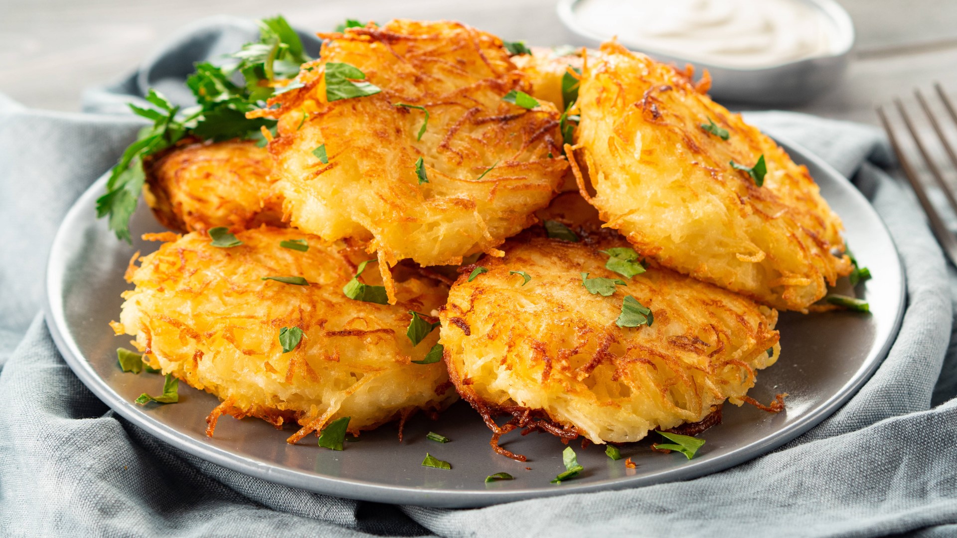 Обжарьте драники с двух сторон по 3–4 минуты. Блюдо будет еще вкуснее, если подать его к столу со сметаной и свежей зеленью, делится портал «Вилкин Pro».