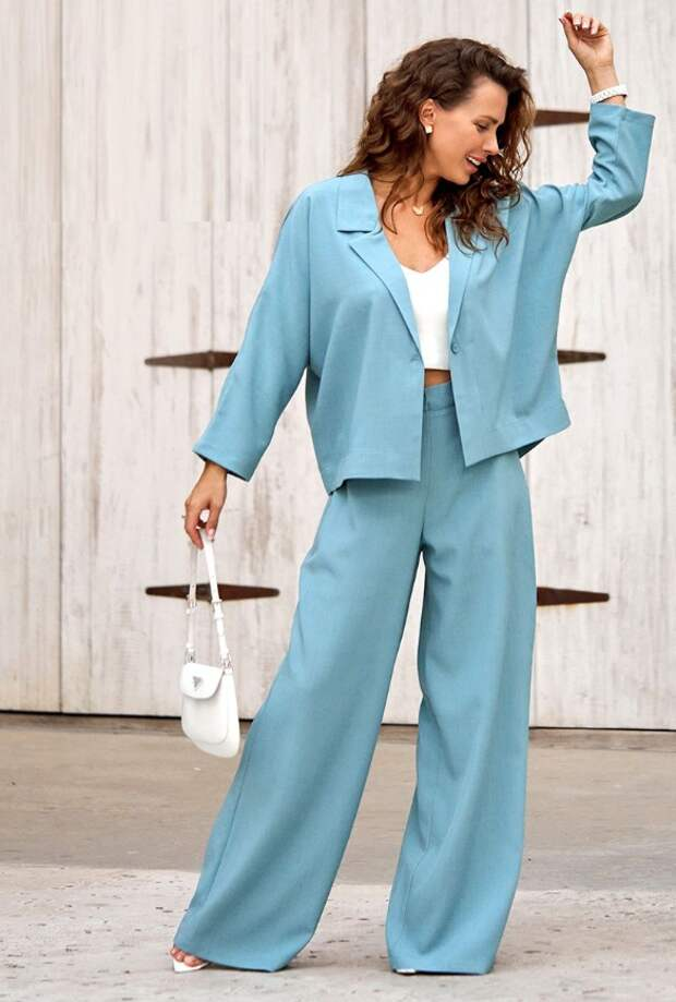 - Брючный костюм: Этот вариант подходит для тех, кто предпочитает сдержанную роскошь. Костюм светлого оттенка с жакетом свободного кроя, повседневный блузкой, создаст впечатление стиля и уверенности. Дополните образ легкими босоножками на квадратном каблуке.