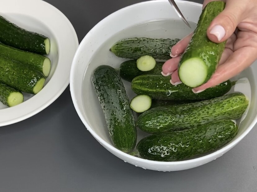 Для начала лучше выбрать небольшие огурцы, которые нужно тщательно промыть. Обязательно обрежьте кончики и сделайте несколько проколов на кожуре. Это поможет рассолу лучше проникнуть в плоды.