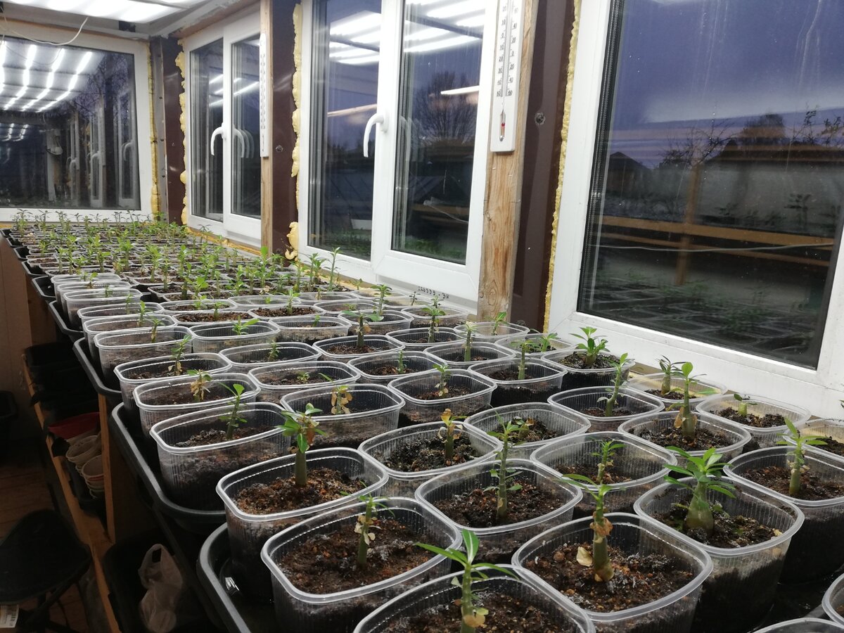 Оранжерея расположена на втором этаже, что позволяет максимизировать солнечный свет даже в зимние месяцы. Кроме того, используется дополнительное освещение, которое автоматически включается дважды в день, обеспечивая адениумам необходимое количество света. Растения уже начали реагировать на новый уровень комфорта: многие из них начали активно развиваться, образуя новые веточки, что является отличным знаком.