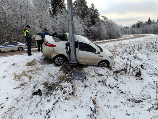 Автомобиль на летней резине влетел в фонарный столб в Сортавальском районе. ДТП произошло вчера днём на 25 км автодороги А-121 «Сортавала»