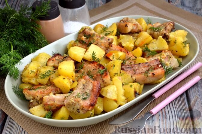 - Картофель со свиными рёбрышками — это укрытое ароматами блюдо сочетает в себе succulent свиные рёбрышки и ароматный картофель, запечённый с чесноком и свежей зеленью. Приготовить его не составит труда, и результат обязательно порадует всю семью.