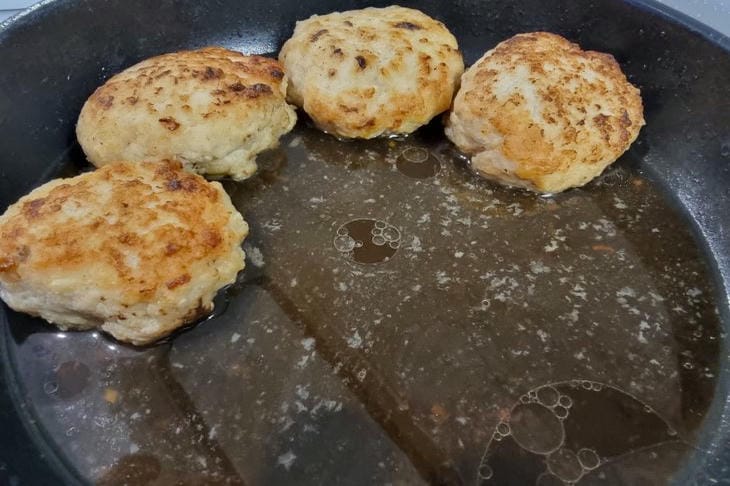Панировка должна работать на вас: используйте не сухари, а размоченный в молоке хлеб или овсяные хлопья. Исследование International Journal of Gastronomy and Food Science (2020) доказало их лучшую влагоудерживающую способность.