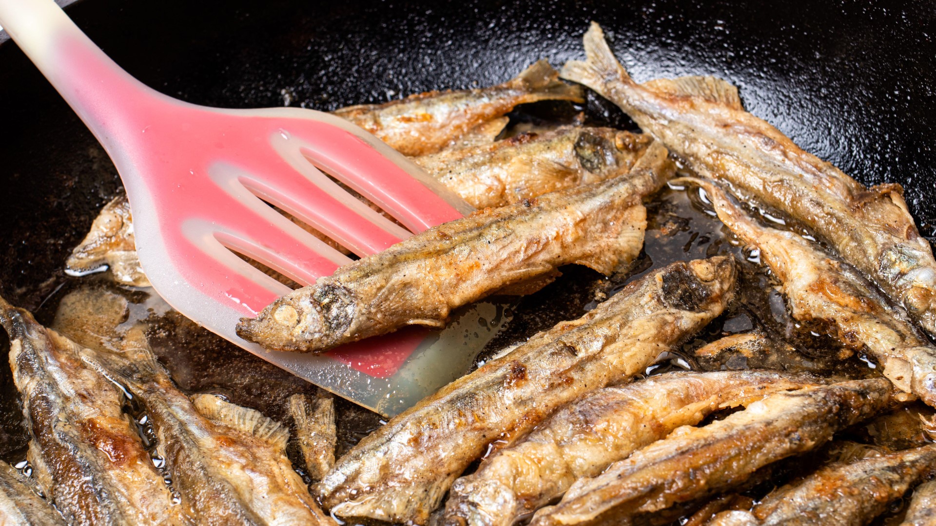 Выложите заготовки на сковороду так, чтобы тушки не соприкасались между собой. Обжаривайте ее около четырех минут с обеих сторон, советует издание «Белновости». Положите мойву на бумажные полотенца, чтобы лишний жир стек с блюда. Готово!